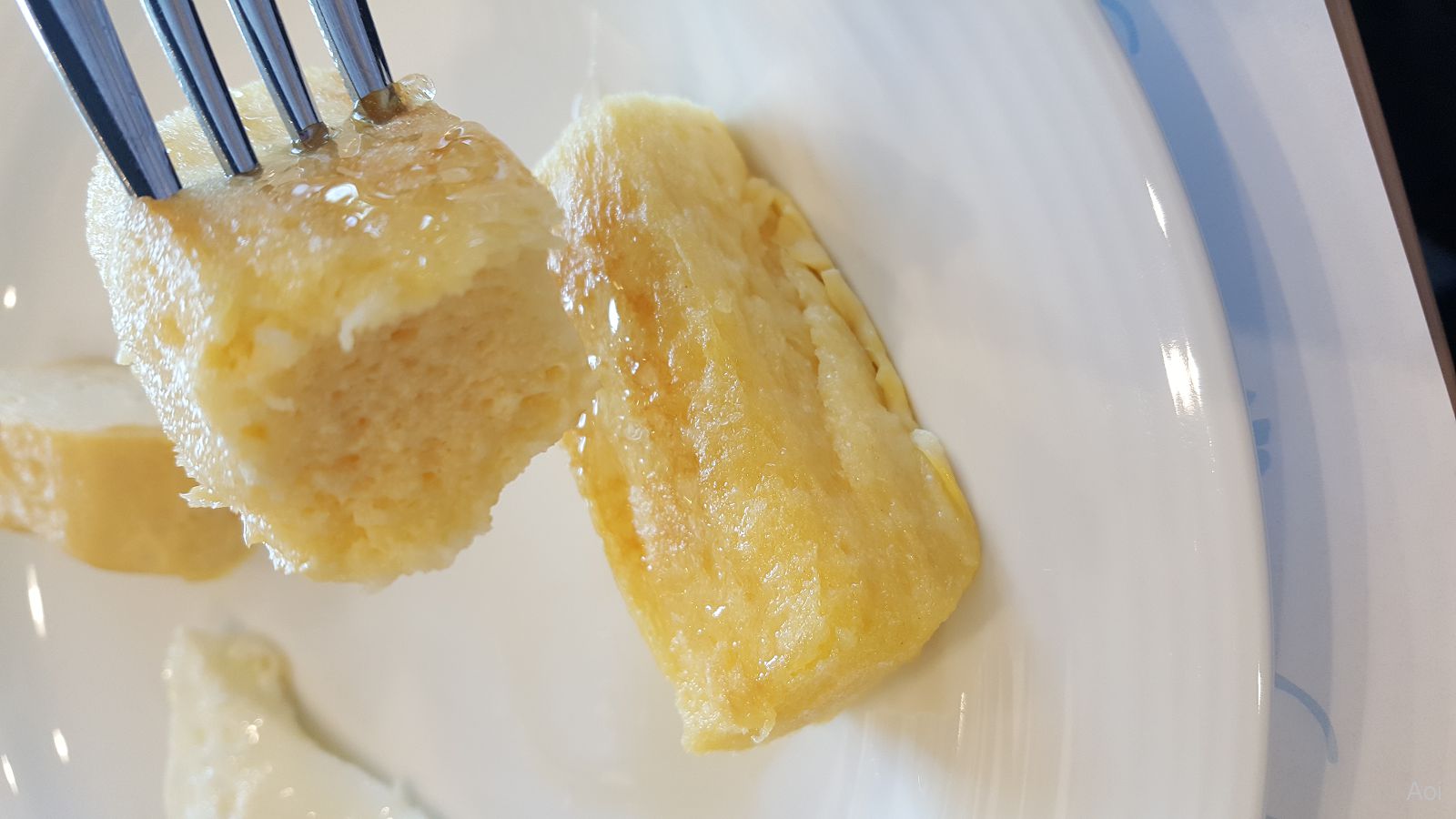 回到地面層看看各樓的標示圖,總算是找到了為在二樓的自助餐廳,服務員協助安排座位,因為自己來得遲,沒有機會坐在靠窗的角落欣賞海景吃飯(不過其實也被飯店的植物遮去大半了),桌上有一張便簽,如果用餐完畢了就將它放入簽桶離席即可。一確認座位,心心念念的都是法式吐司,直接走到了麵包甜點的位置,接了兩塊回到就直接回到座位。這個就是被稱作最好吃的法式吐司嗎?整體的金黃色非常漂亮,淋上糖漿之後咬下,口感非常鬆軟,咬開的切面基本上看不到多片吐司之間應該有的縫隙,整個麵包融為一體,而且吃起來更接近一整塊海綿蛋糕的感覺,除了糖漿的味道之外也能聞到一點點的雞蛋香,對於這樣的法是吐司被給予相當高的評價真的是一件一點也不奇怪的事情,吃完第一塊以後心裡滿滿的幸福感,於是整個早點時間就這樣陸陸續續吃了應該快要十份,相對來說其他的餐點雖然也稱得上是美味,但也就是這類酒店應該有的基本水準,仔細掂掂3000日幣的餐費,若不是衝著法式吐司我應該會拒絕,大概也理解為什麼很多人都是選擇單點客房服務了。